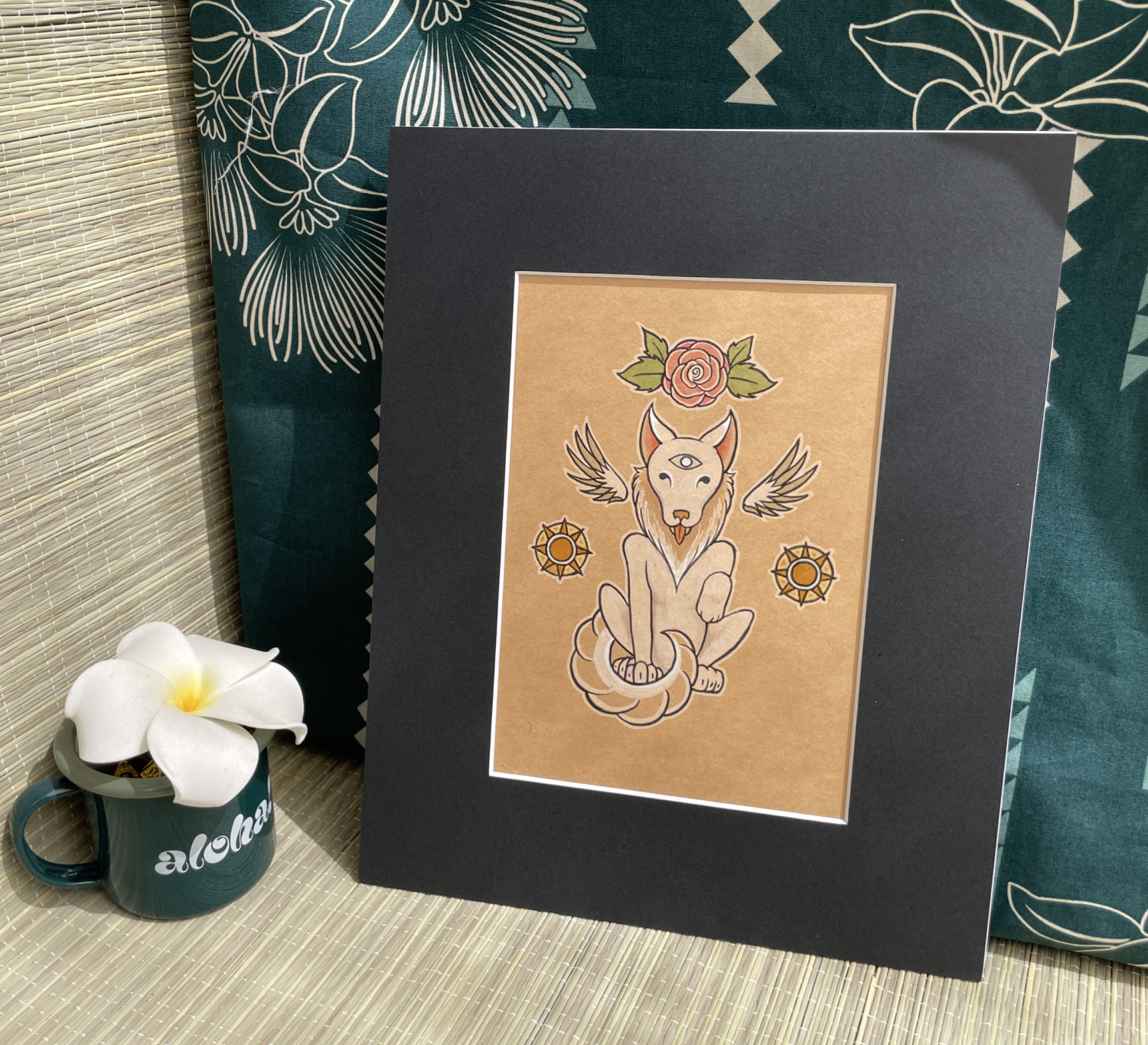 Original illustration. 5x7 matted to 8x10. Ink on card. The Fool from the Small Gods Tarot deck. Not used in the deck.