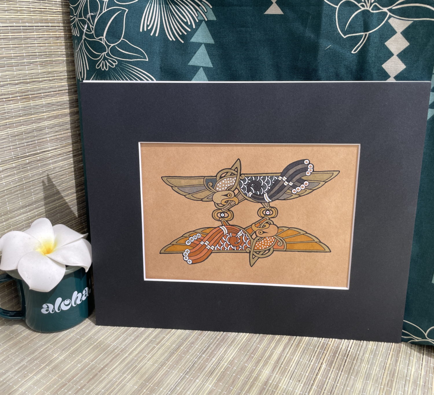 Original illustration. 5x7 matted to 8x10. Ink, metallic oil medium on card.