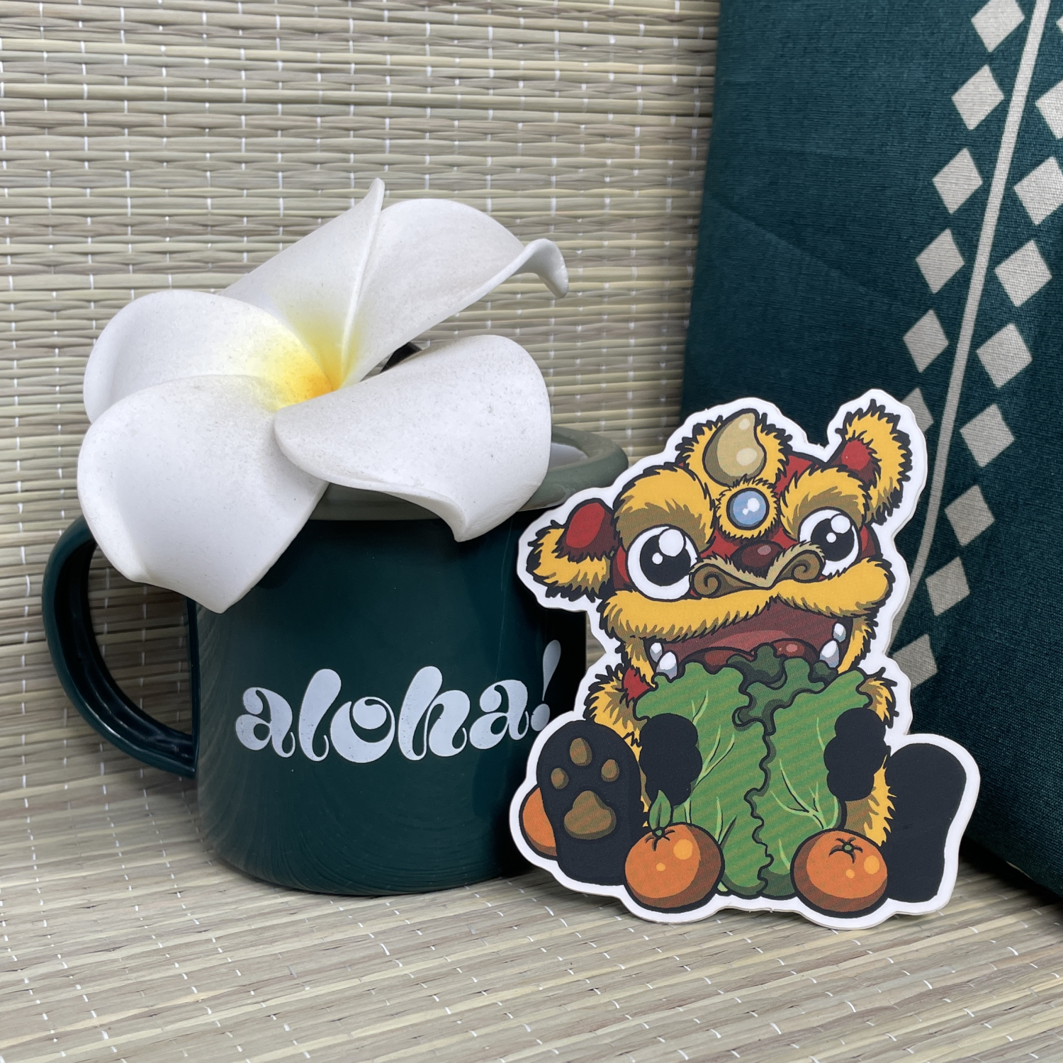 Gōng Xǐ Fā Cài! The Lion loves his lettuce and oranges.